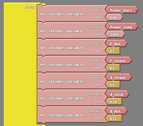 Setze dann die Anfangswerte für beide Ampeln ein: