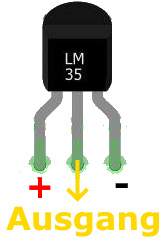 Wenn du deinen Temperatursensor LM35 mit der flachen Seite zu dir betrachtest, haben die Beinchen diese Reihenfolge: